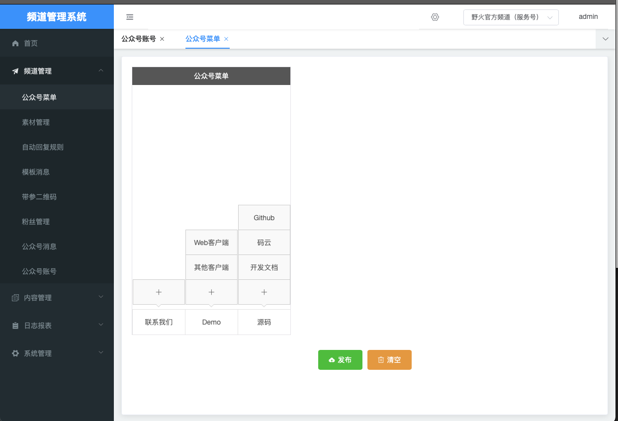默认编译```client```和```manage```会把前端页面放到```server```的```static```目录。也可以前后端分离部署,把前端页面单独部署。